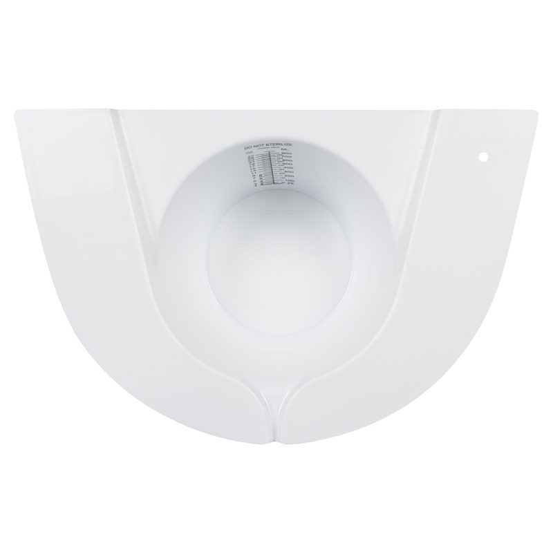 Toilet top design, capacity of 790 cc (27 oz), graduated.