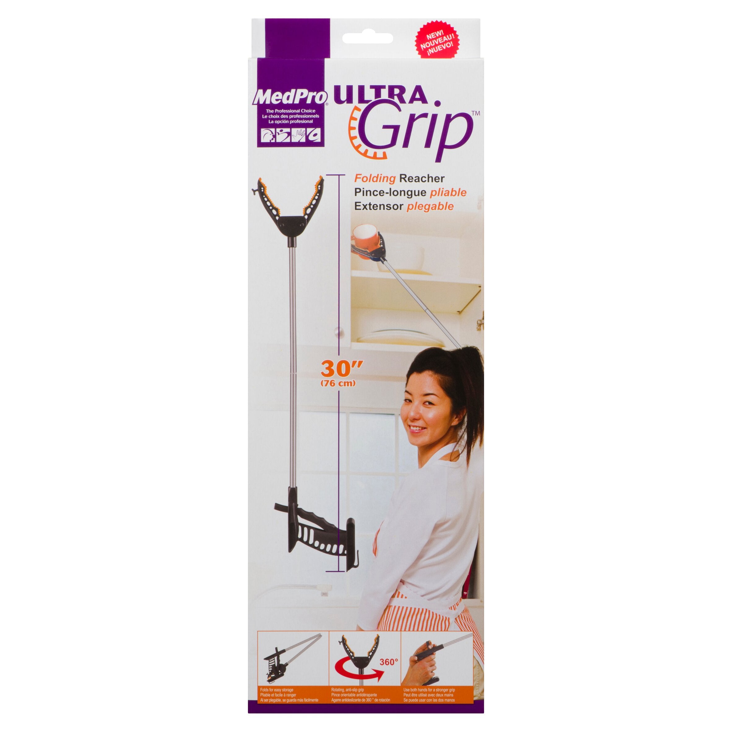 - Adds 30″ (76 cm) to your reach! No more straining to grasp objects from high shelves or bending when picking-up small objects. This folding reacher is great for users with limited mobility, flexibility and hand strength.