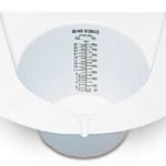 Toilet top design, capacity of 790 cc (27 oz), graduated.